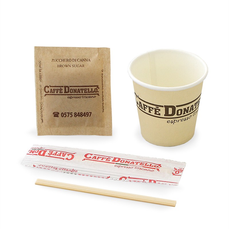 Zucchero di canna, bicchierini e palettine: tutto il necessario per il tuo caffè